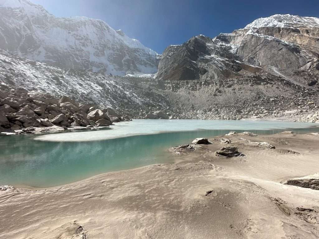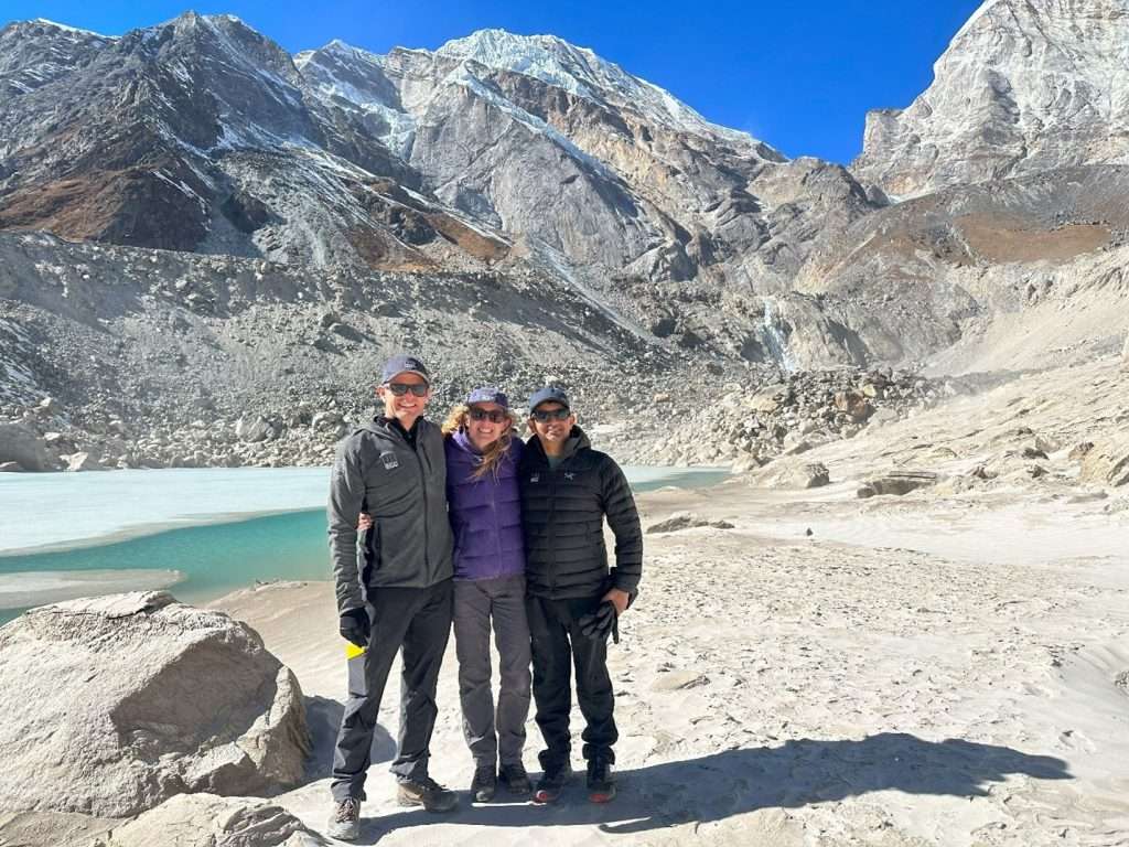Following the event, BGC’s team of Dr. Alex Strouth, Emily Mark, and Dr. Keshab Sharma visited the devasted area and outburst lake (at about 4800 m elevation) to assess the cause of the flood, surficial geology, damage extent, and future risk scenarios. Experts from ICIMOD, Nepal’s National Disaster Risk Reduction and Management Authority (NDRRMA), and key personnel of ADB’s Building Adaptation and Resilience in the Hindu Kush Himalayas (BARHKH) initiative) also visited Thame to evaluate the disaster’s impact and discuss mitigation strategies.