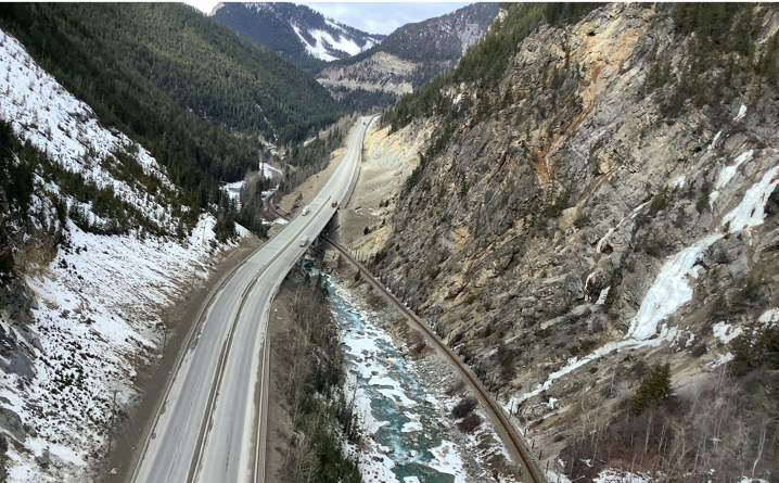 This section of the CP railway is known to have a history of rock falls, debris flows, avalanches, landslides, and river erosion hazards. CP required that MoTI prevent any increase in frequency or magnitude of these types of events occurring during or following the construction of the KHCP 4.