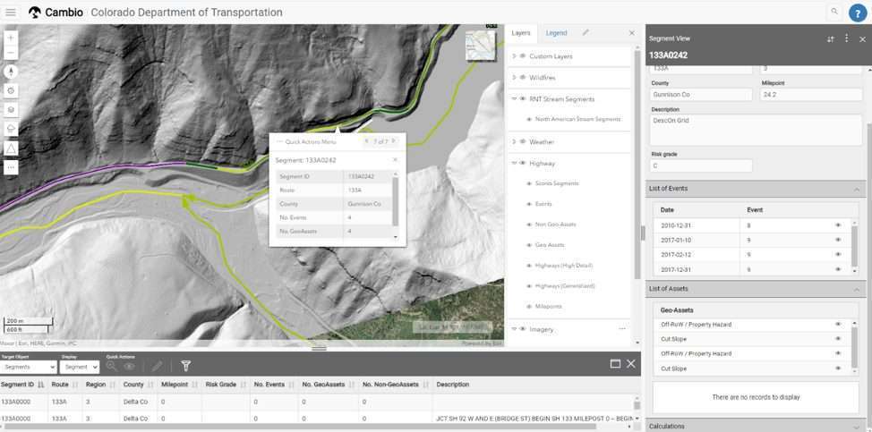 The work includes re-evaluation of performance measures and inputs based on implementation experience to date; integrating forecasting frameworks for rockfall, other geohazard types, and assets into the GMP; consolidation and development of a framework guidance for corridor and other planning studies; incorporation of geotechnical assets and deterioration algorithms; and incorporation of hazard reduction factors based on mitigation type and monitoring technology. In addition, BGC initiated a pilot implementation project to adapt the BGC Cambio software system for use by the Colorado DOT in support of their GMP.